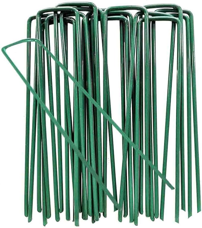「最新」人工芝 おさえピン 防草シート固定ピン 人工芝マットロール用 U字ピン Uピン杭 頑丈錆防止 緑 農業/園芸/工事用不織布シート固定の釘 長さ15cm*幅4cm*太さ0.32cm(50本) | oioioichan