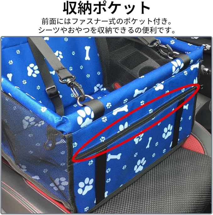 飛び出し防止のセーフティベルト付きで安心・安全。車のシートを毛や汚れからも守ります。