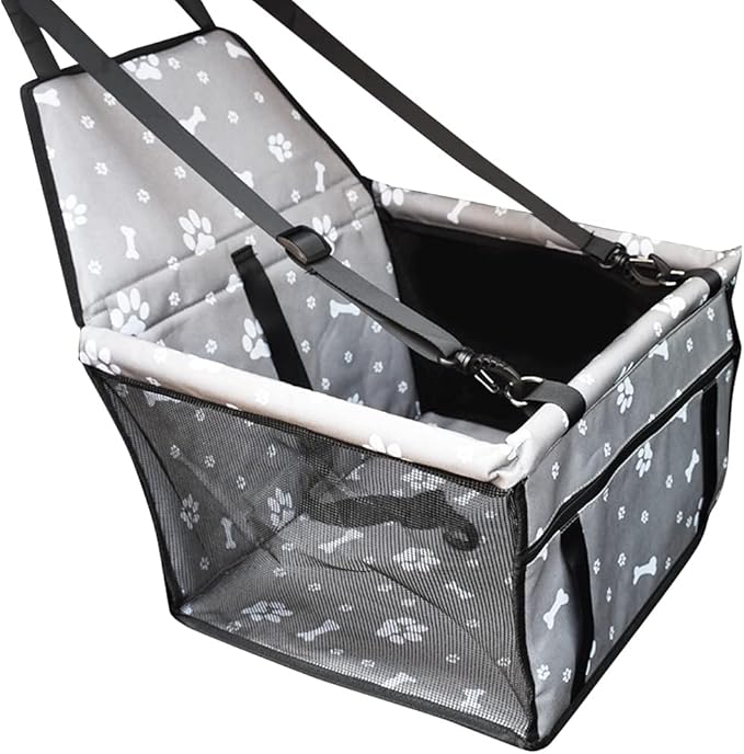 SUGGEST ペット用 ドライブ シート ボックス 選べるカラー セーフティベルト付き 側面メッシュ構造 ポケット付き 犬 車内 ペット 折りたたみ ドライブシート ドライブボックス (グレーS) | oioioichan