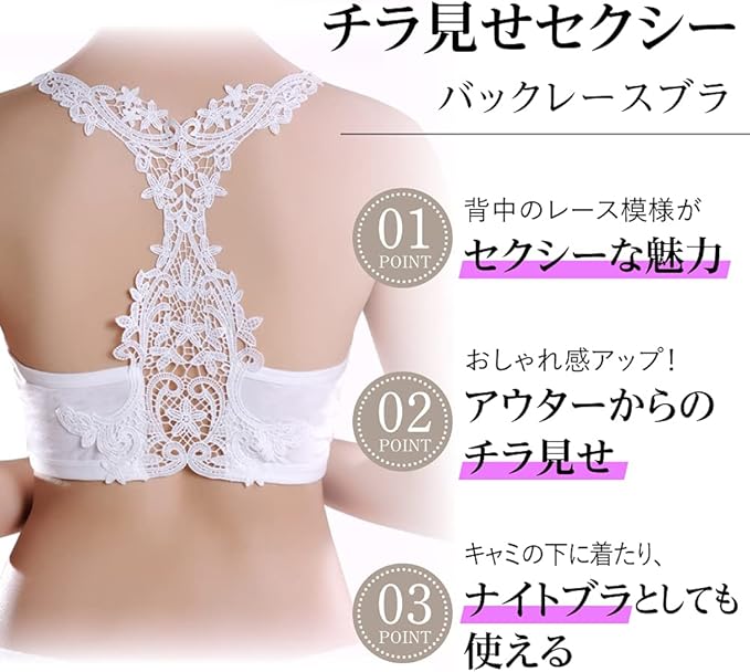 【セクシーなナイトブラ】エレガントでセクシーなレースをふんだんに使ったワイヤーレスなブラジャーです♪ナイトブラ以外でも背中見せのインナーとしてドレス用下着や夏場の普段使いでもご利用頂けます★