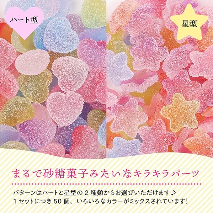 【手作りアクセがぐーんとオシャレに!】 いろんなカラーがミックスされたデコパーツです♪ およそ50個がセットになっていろんな作品が作れちゃう!