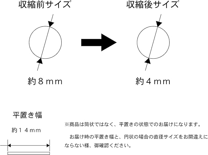 ◆収縮率 50%(通常時約8mm→最大収縮時約4mm)◆収縮温度 70℃~120℃ 家庭用ドライヤーでも収縮可能ですが、ヒートガン等をご利用頂くと便利です。