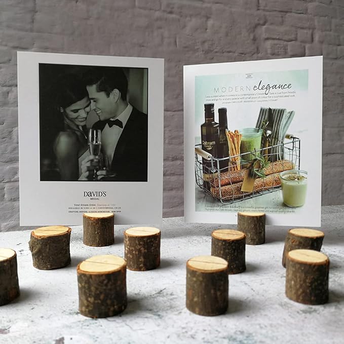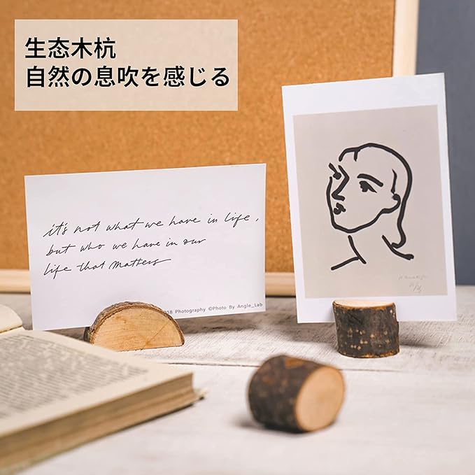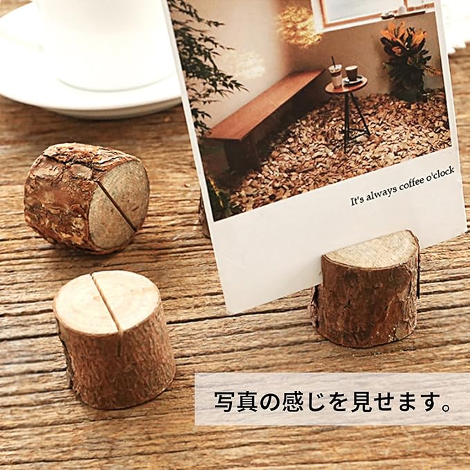 RICISUNG 木製カードクリップホルダー カードスタンド メモスタンド 5個入り 名刺 写真立て 自宅 オフィス 店舗 天然木 丸太 ミニ 木製 卓記号 小物 卓上スタンド メモホルダー | oioioichan