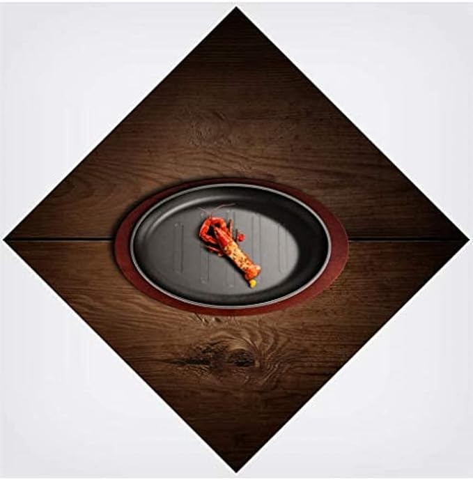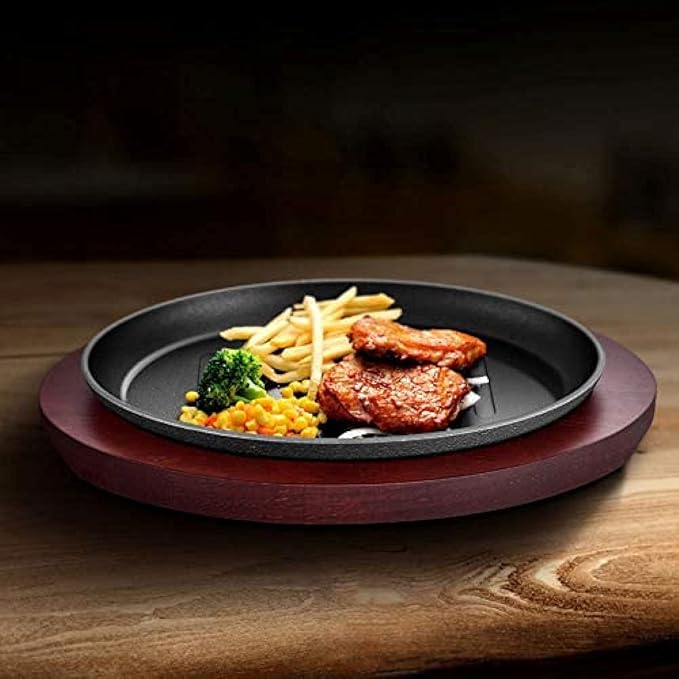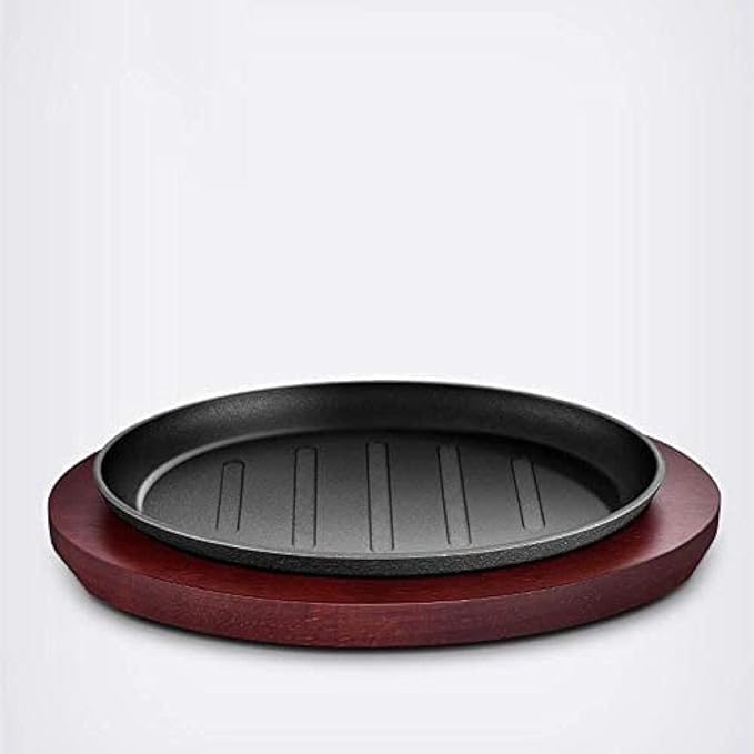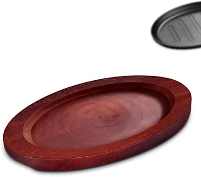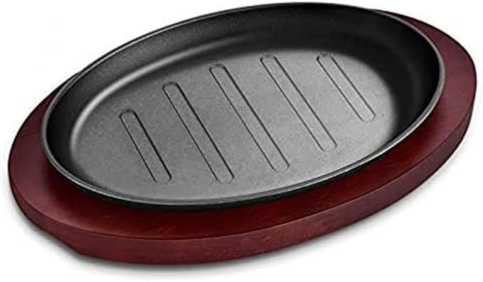 グリルパン、楕円形の鋳鉄ステーキ鉄板焼きプレート、温かいサービングディッシュ、レストランの供給のための木製のベース 家庭やキッチンの調理器具 肉、シーフードのグリルに最適-27 18cm | oioioichan