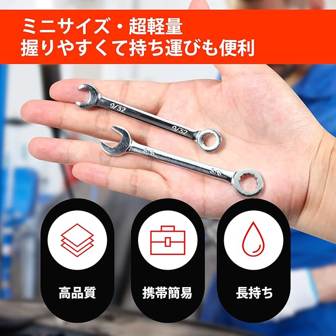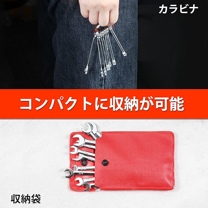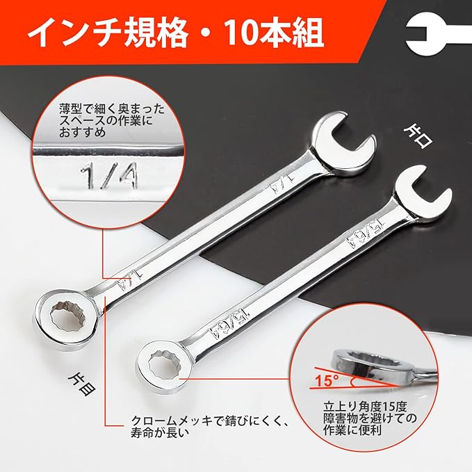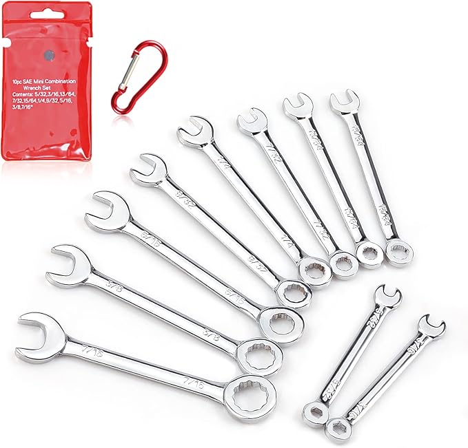 LEONTOOL ミニスパナセット 極薄スパナ 10本組 5/32"~7/16" インチサイズ コンビ型スパナ コンビレンチ コンビネーションレンチセット ミニ片目片口スパナ 薄型 軽量 カラビナ 収納袋付き ショートタイプ 作業工具 父の日 ギフト お父さん プレゼント | oioioichan