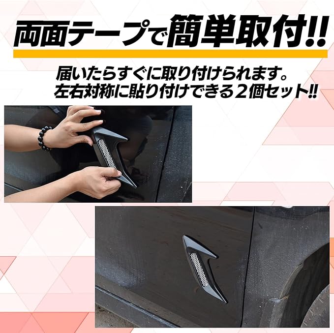 簡単に取り付け可能でありながら、車のエクステリアを格段に引き立てるこのダクトは、車種や年式を問わずに様々な車に適合します。自由なアイディアで様々な場所に取り付け可能なこの製品で、あなたの車をさらに特別なものにしましょう。