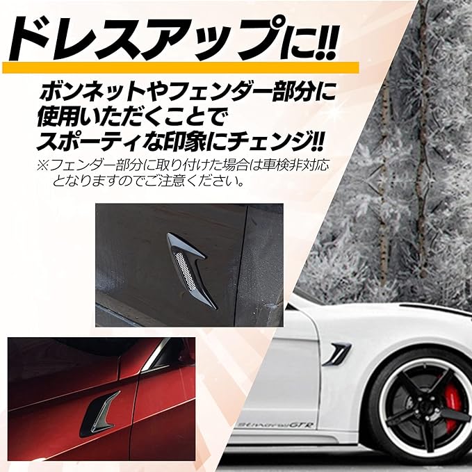 汎用 ダミー ダクト この汎用ダクトはフェンダー用として設計されていますが、クリエイティブなアイディア次第で、車のボンネットやドア、バンパーなどにも使用することが可能です。