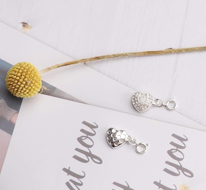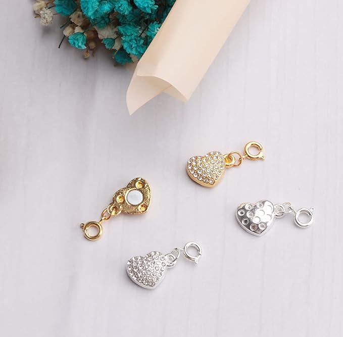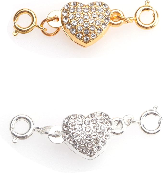 Ruwado ロックマグネットクラスプ ハート型ラインストーンチェーンエクステンダークロージャーコネクタ ネックレスブレスレット用 レディース DIY ジュエリー製作用品 アクセサリー(シルバーとゴールド) 2個 | oioioichan