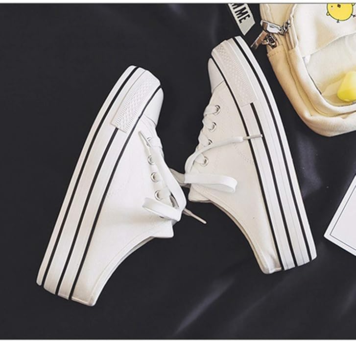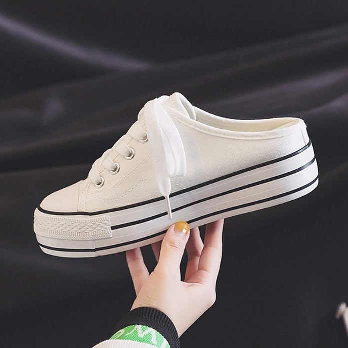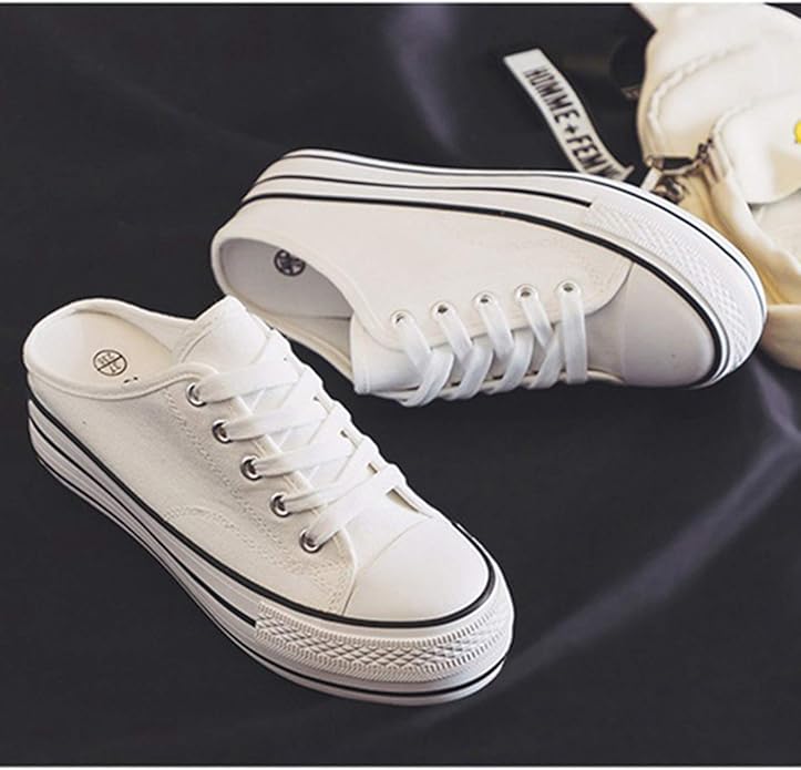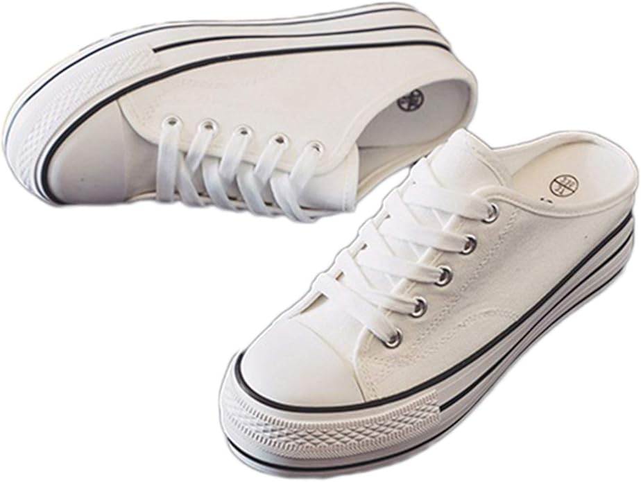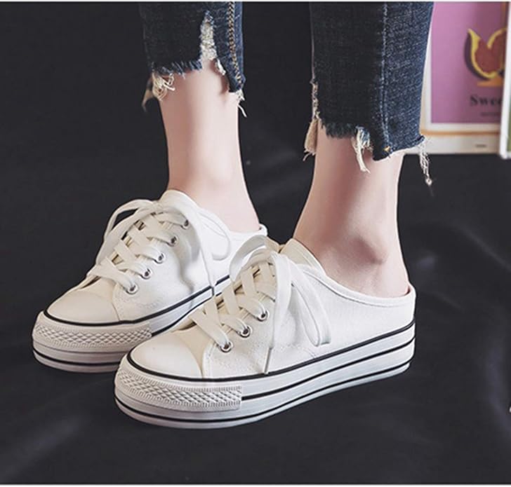 [SEJUC] 軽量 かかとなしスニーカー ホワイト レディース スリッポン かかと無しシュー ズ スリッパ キャンバス サボサンダル レースアップ通気性 脱ぎ履きやすい おしゃれ ファッション 履きやすい 大人 カジュアルシューズ 24.0cm 厚底 リボン | oioioichan