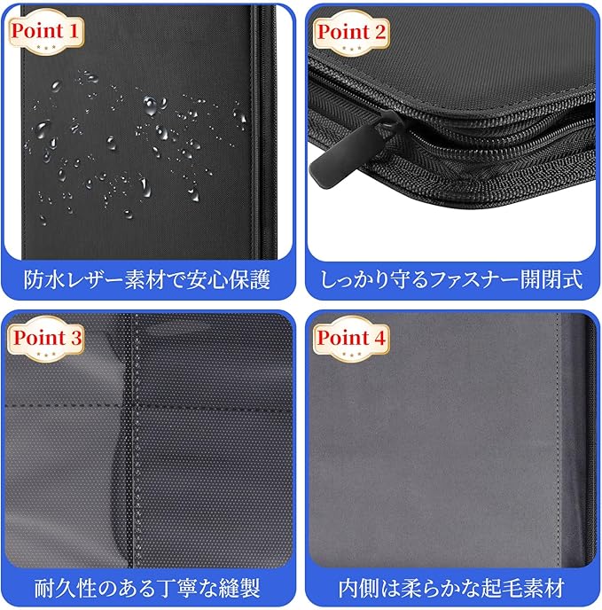 「高品質のPU素材」カードファイルの表面は高品質のPU素材、埃、汚れを拭き取りやすいです。また、ファスナー付きのデザインで、持ち運びにとても便利でカードをしっかり固定し、外部からの汚れや損傷から守ります。
