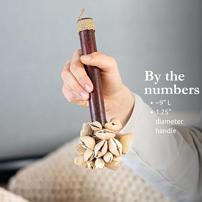 殻をロッドに結び付け、手で握って演奏しやすくしたシェイカー