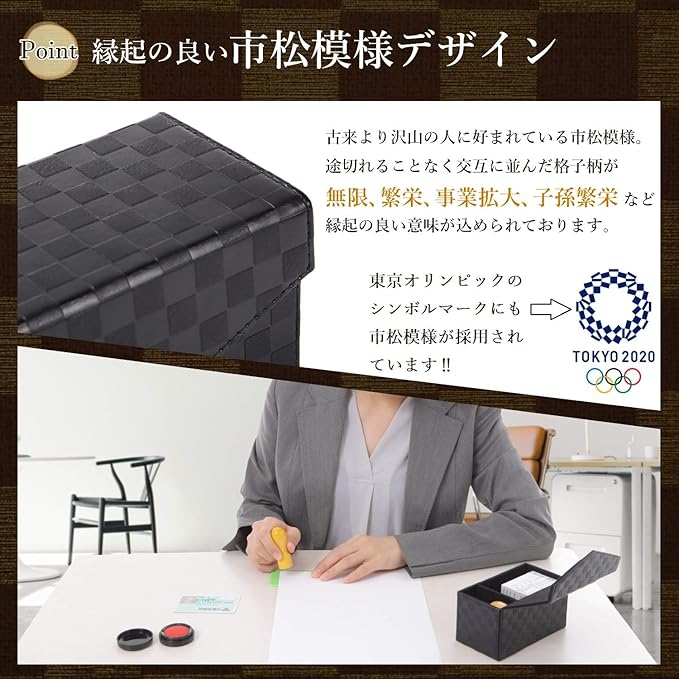 M bius 【市松模様で縁起のいい・法人 印鑑ケース シリーズ・小型サイズ】 ハンコケース ゴム印ケース 印箱 判子ケース 法人用 会社 印鑑 ケース 法人 (実印 銀行印 角印 認印 住所印 など) 2本~4本+ゴム印 №02 | oioioichan
