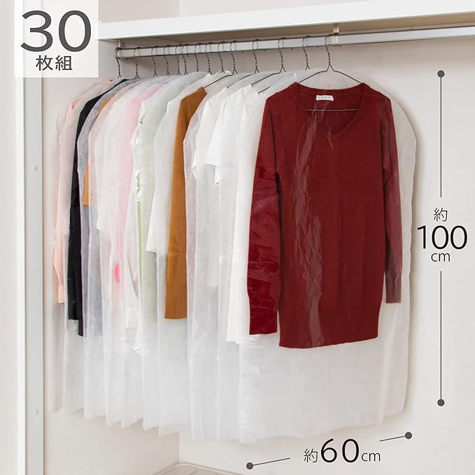 【クローゼットがスッキリ】:たっぷり30枚入りで、カバーを掛けてクローゼット内の服をまとめてスッキリ収納。
