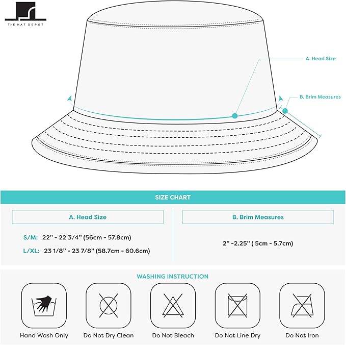 ■ 帽子の詳細 - The Hat Depotデニムコットン&軽量、速乾、パッカブルバケットサンハット、クラシック&快適フィット。 帽子サイズ:S/M-56-57cm(22インチ-22-1/2インチ)、L/XL-58-59cm(22-7/8インチ-23-1/4インチ)、つばは2~2.25インチ。 真鍮トーンの通気アイレットが頭を呼吸します。 日差しや風から守るだけでなく、 昼夜 カジュアル シーンでも おしゃれに活躍 可愛らしくスタイリッシュなデニムコットンバケットハット。