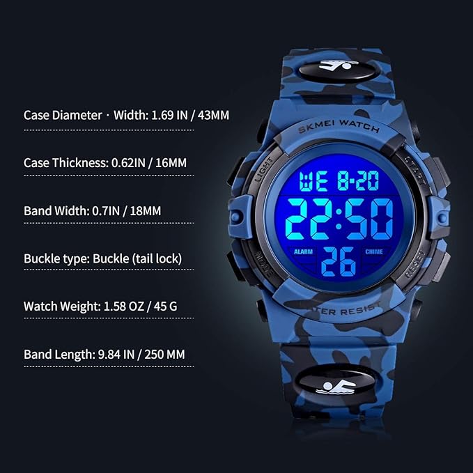 多機能デザイン:デジタルディスプレイ、LEDバックライト、日付、12/24時間、アラーム、ストップウォッチ、50M防水。 お子様への誕生日やクリスマスのプレゼントに最適です。
