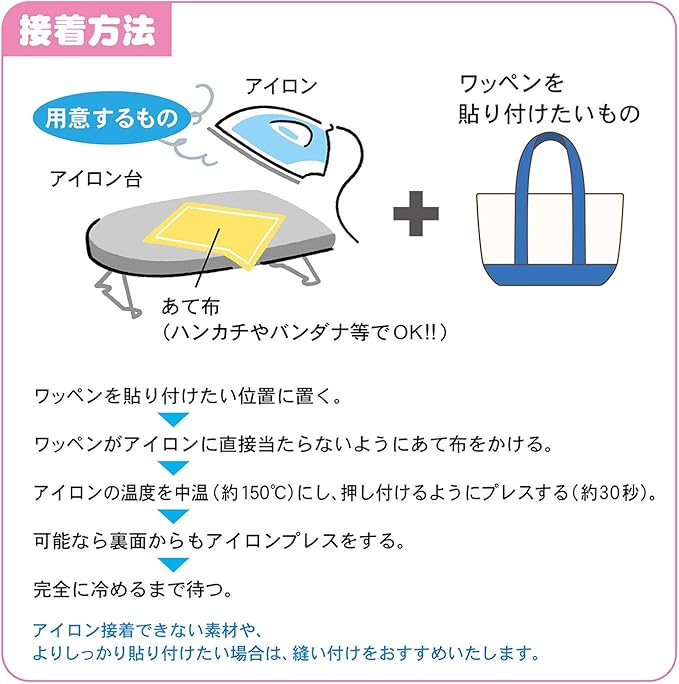 アイロン接着が可能なので、お好きなアイテムに貼り付けることができます。