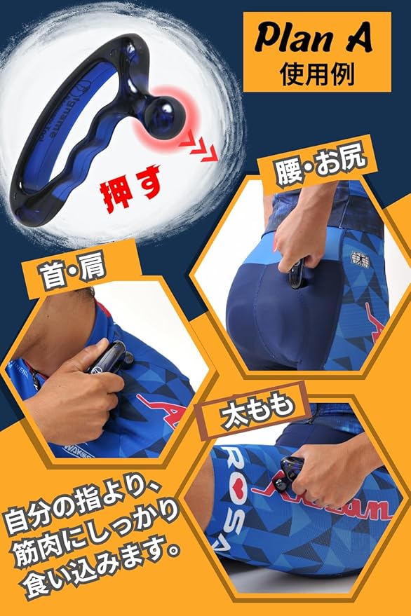 【に基づいた指圧器】人間の親指の大きさを考えて設計されたツボ押しプレートです。広範囲の筋肉に対して、どの角度からも、適切なツボ押しの圧力でアプローチします。