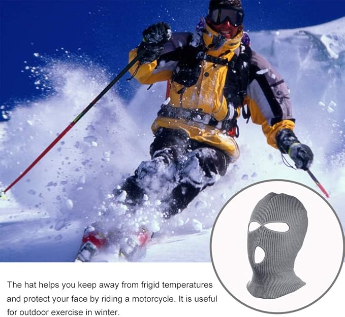 スキーには3つの穴があります。 目2インチ、口1インチ。 フェイスは目と口の開口部で頭全体をカバーします。 目と口の縫い目は縫製され、冷気を遮断し、暖かさを保ちます。