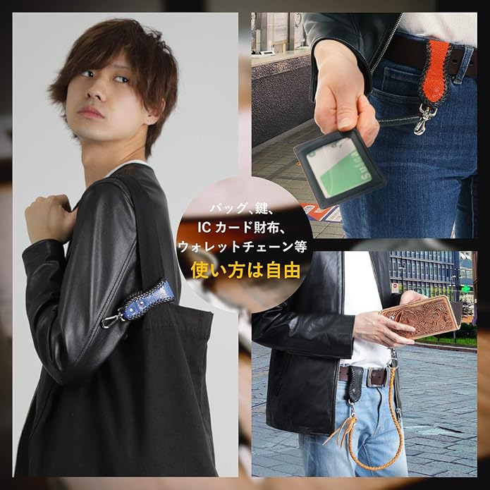 ベルトループ仕様で、そのままキーホルダーとして、または長財布にウォレットチェーンを繋げてバイカーに人気!