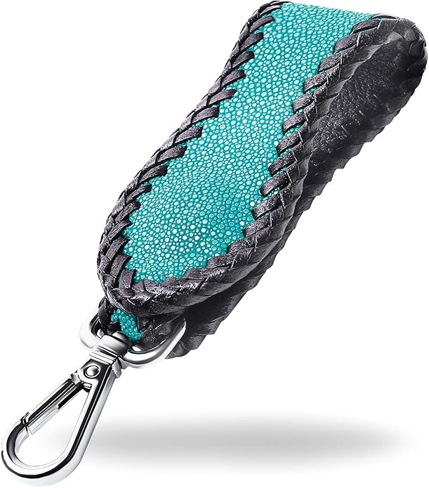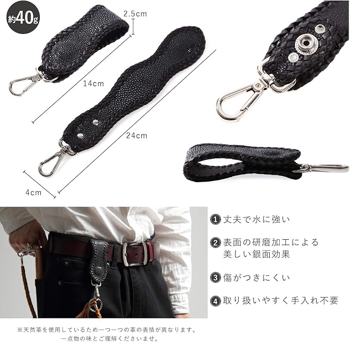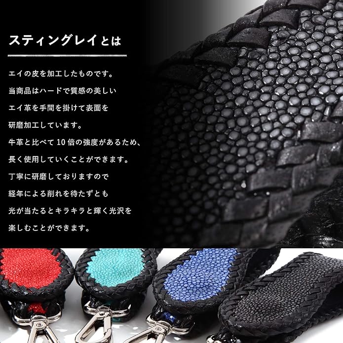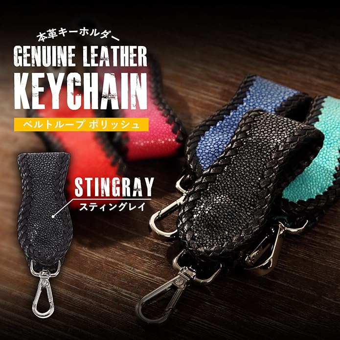スティングレイ(エイ革)を使用した本革キーホルダー、ワンタッチボタン装着式