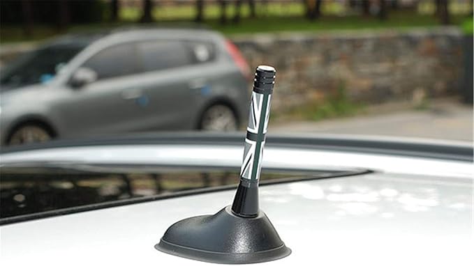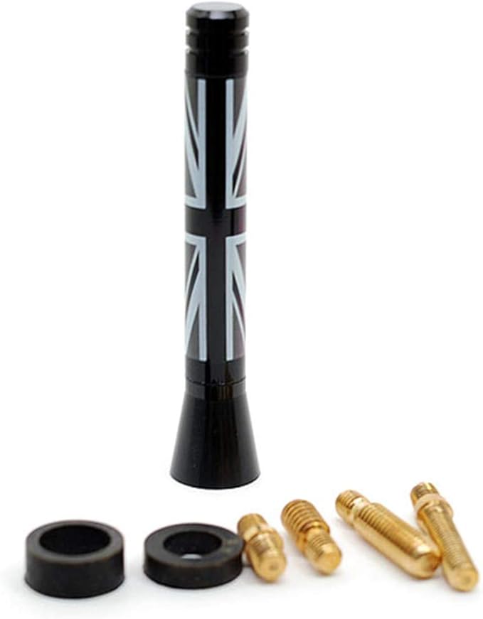 ミニクーパー アンテナ ヘリカルショートアンテナ チェッカー5mm/6mm車用 ショートアンテナ BMW MINI ミニ クーパー 汎用 FM AM ラジオ (7.7cm, グレーユニオン) | oioioichan