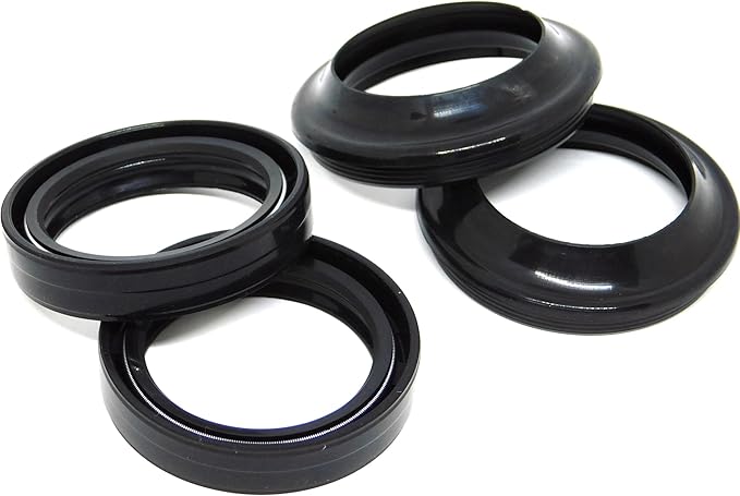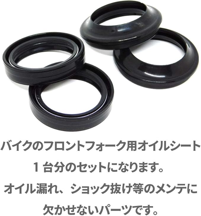 バイクのフロントフォーク用オイルシート1台分のセットになります。 フロントフォークの復活に欠かせないのがオイル交換。劣化したオイルをすてて、新しいオイルに変えれば新車当時の減衰力が戻ってきます。その際に欠かせないのがオイルシールです。