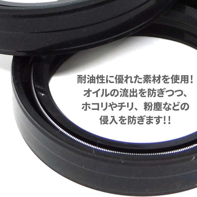こちらのオイルシールは耐油性に優れたゴム素材を利用しています。フォークオイルの流出を防ぎつつ、ホコリやチリ、粉塵などを内部へ入れさせない機能もしっかり果たします。