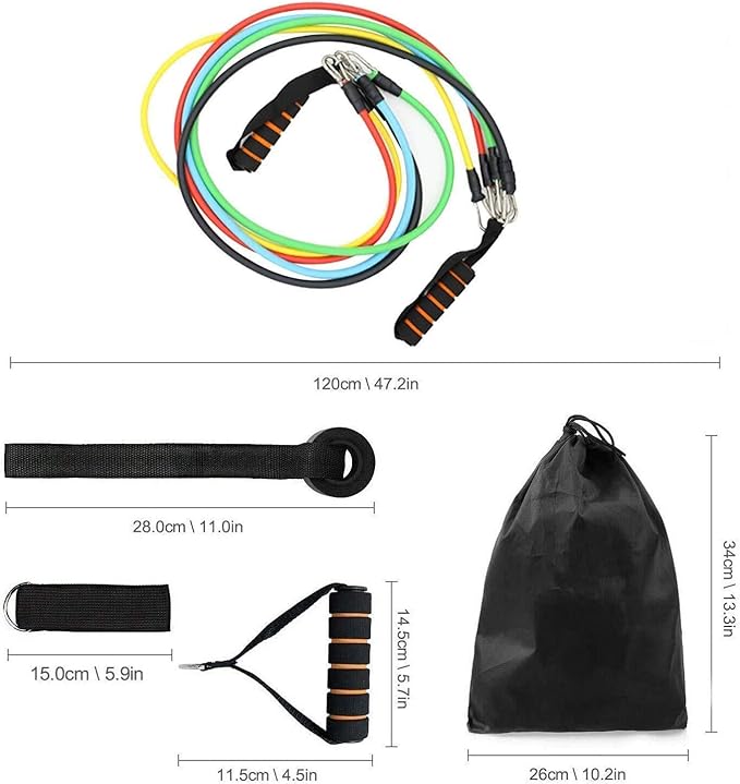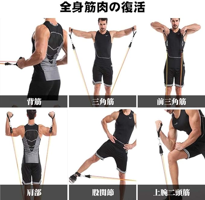 【パッケージに含まれるもの】5PCSチューブ、2PCSハンドル(ランダムカラー)、2PCS足首ストラップ、1PCSドアアンカー、1PCS収納袋。さまざまなエクササイズに最適で、自宅にいても健康で健康を維持するのが大好きな人には必需品です。