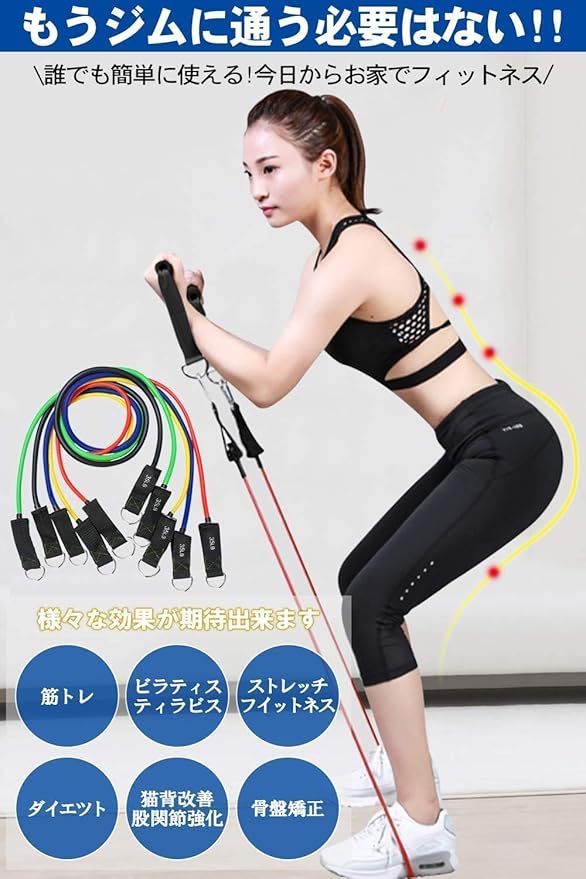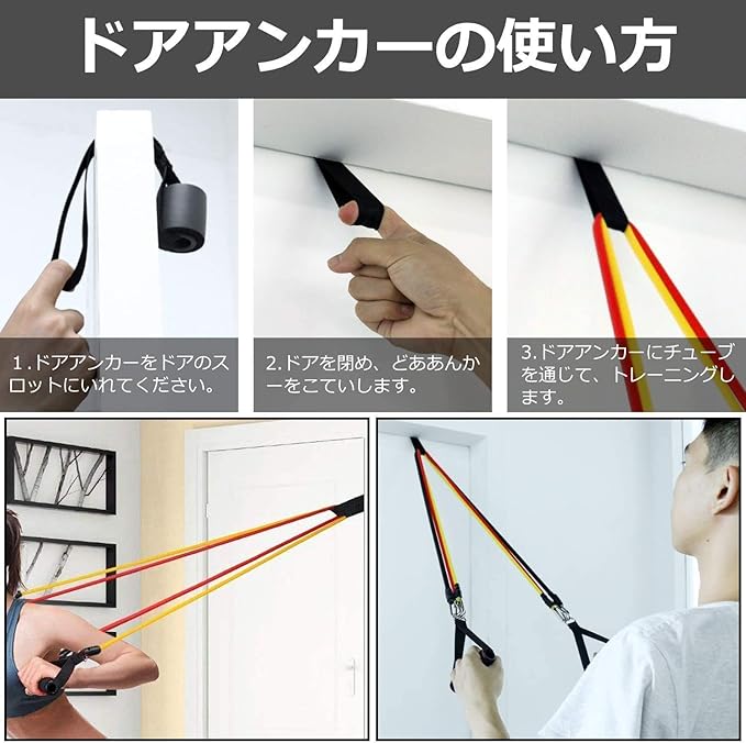【安全性アップ】こちらのストレッチバンドは、高品質のラテックス素材のチューブとなっているので重い器具を使うより安全かつボディを鍛えられます。ステンレスメタル製のフックとカラビナはしっかりして、大変安全です。また、フォームバンドが手を怪我から守ります。 より軽量、より簡単:エクササイズバンドの使用は、場所をとらず、騒音などの心配もないので、自宅・オフィス・ホテル・ジムなどでも気軽に鍛えます。テレビを見ながら、育児しながら、軽量で省スペースでいつでもトレーニングできます。