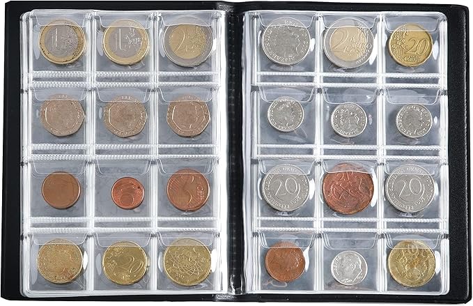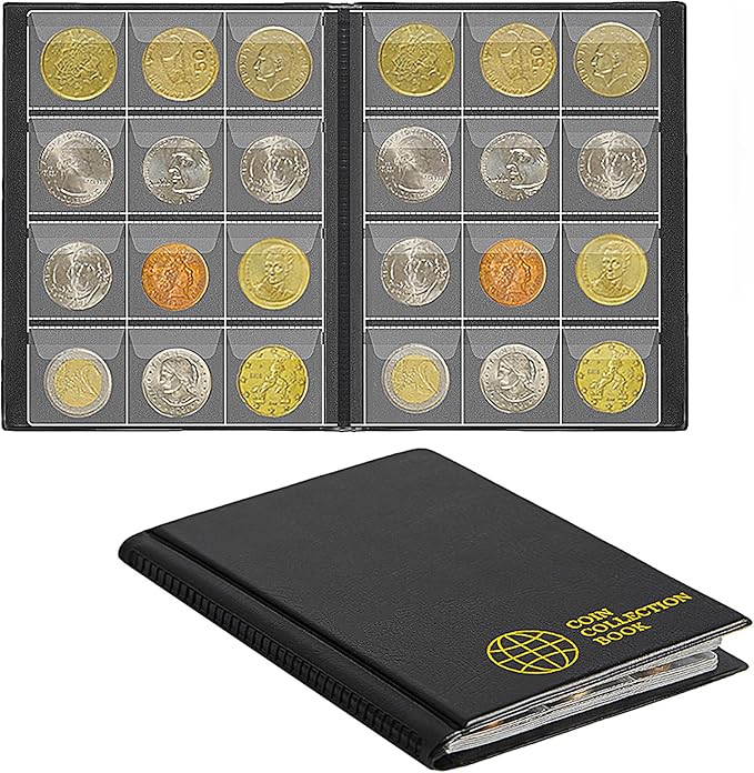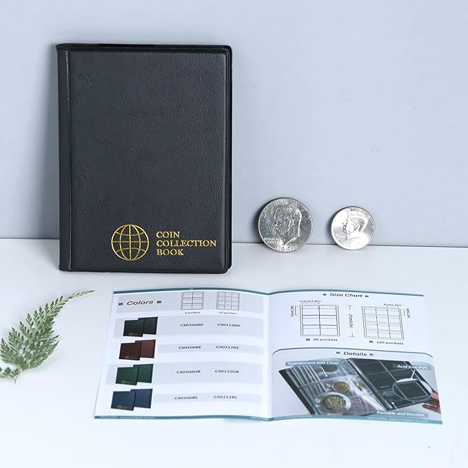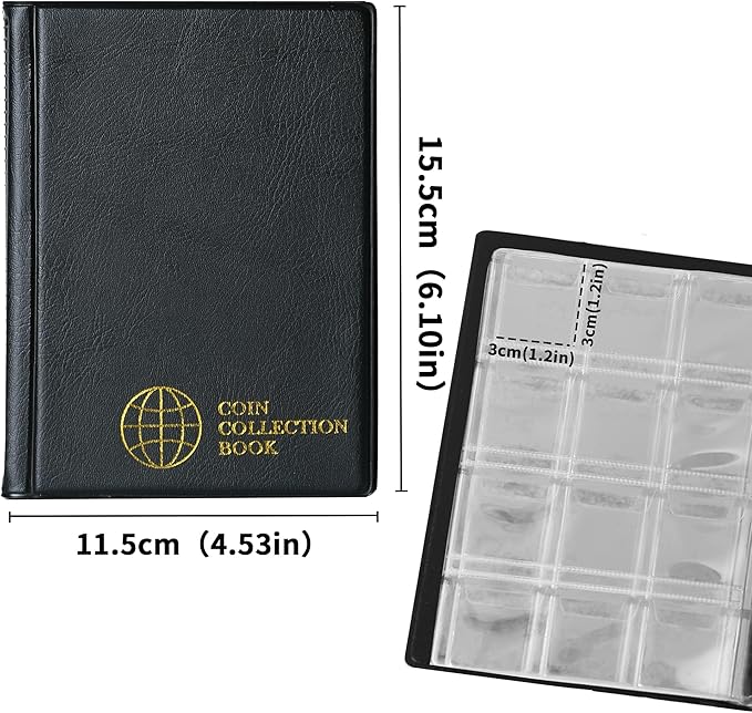コインコレクションアルバム 120ポケット - 3x3cm/1.2x1.2インチ コインホルダー ブックコイン収納アルバム マネーペニーポケット コレクター向け ブラック CS0112BK | oioioichan