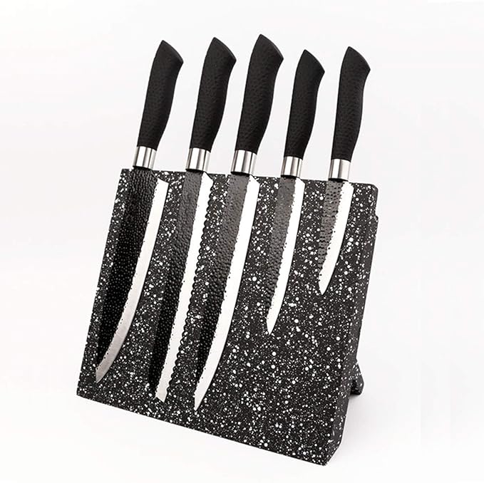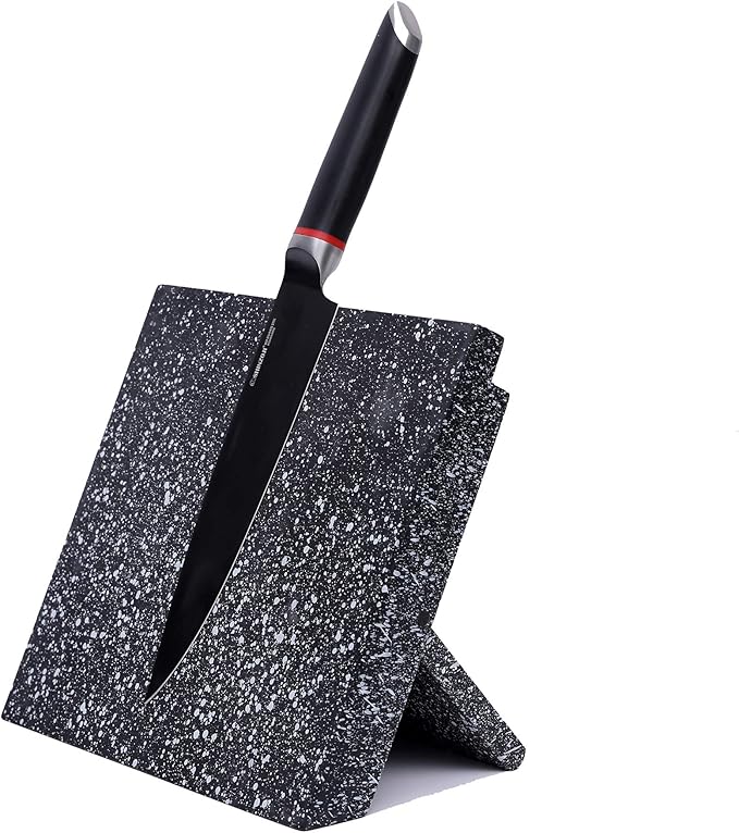 最高のマグネットブロックセット - 最大6本のナイフを安全にこのナイフブロックに収納できます。最長の刃は8インチです。 ブロックの寸法は10インチで、重さは約1ポンドです。 ナイフとは別に、ハサミやスプーンなどの他のアイテムを収納でき、完璧なカトラリーディスプレイスタンドです。