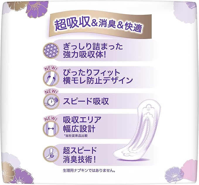 スピード吸収、超スピード消臭技術。 いやなにおいを中和する技術で、吸水後のにおいもすぐに消臭。