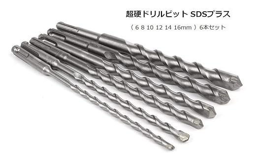超硬ドリル SDS プラス シャンク 200mm 6本 セット ( 6 8 10 12 14 16mm ) コンクリート 穴あけ