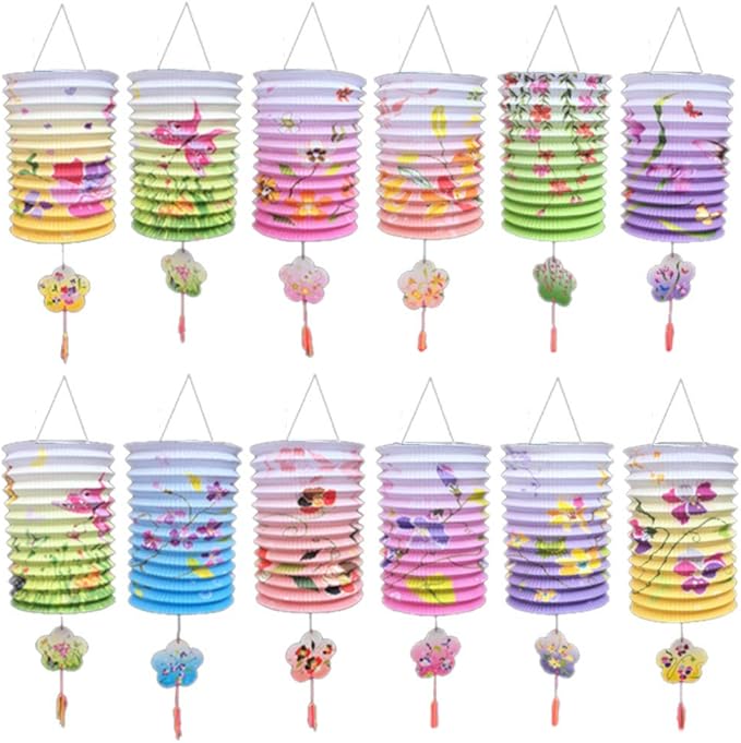 お盆 初盆 七夕 夏祭りの装飾に! 涼しげな花柄をあしらったミニちょうちん 12個セットです。
