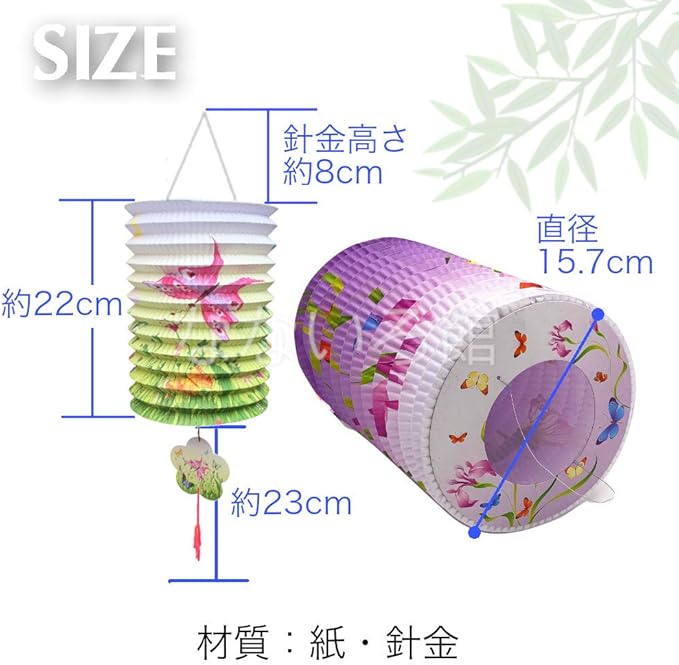 【サイズ】直径15.7cm 伸ばした時の長さ:約22cm 針金高さ:約8cm 下の飾り:約23cm 材質:紙 針金
