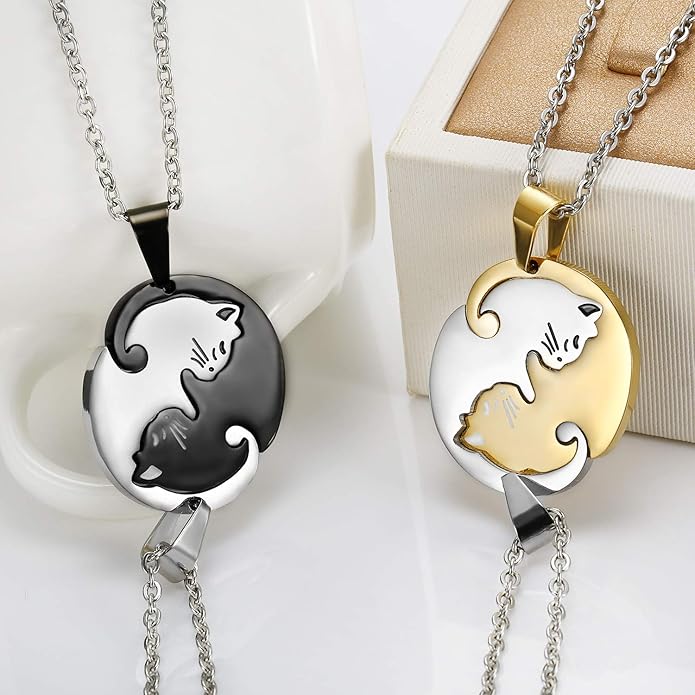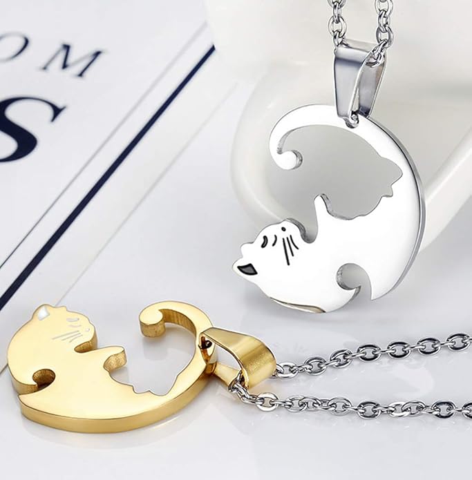 Ostory ステンレス製 ペアネックレス 可愛い 猫 ネックレス ペンダント 2個セット カップル ジュエリー ネックレス レディース メンズ アクセサリー アレルギー対応 | oioioichan
