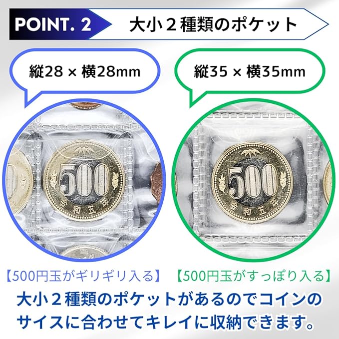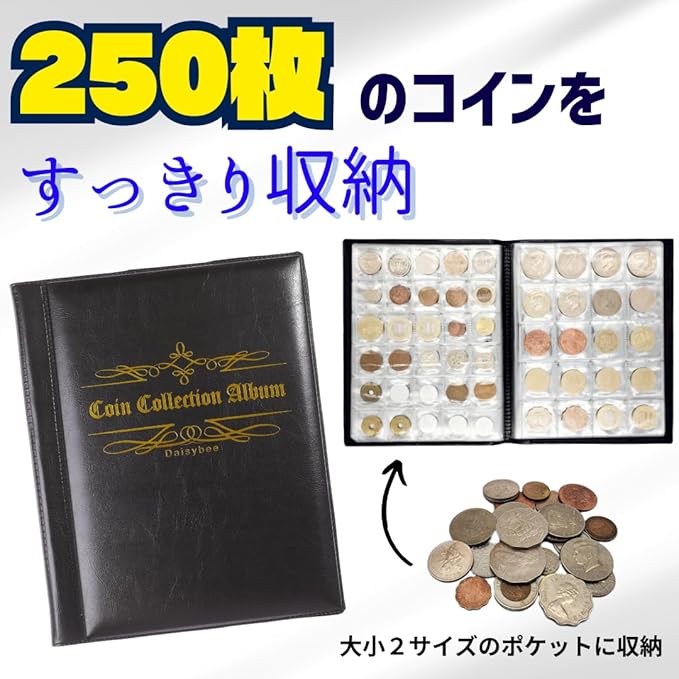 ■さまざまなコインを綺麗に収納できる便利な大・小 2サイズのポケットタイプ。■コインだけでなくポケットサイズに合うコレクションであれば、綺麗に収納・保管できます。※商品画像の銀貨や硬貨は使用例であり商品には付属しません。