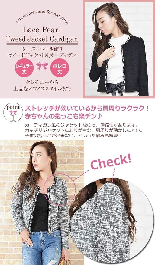 サイズ:レギュラー丈(着丈:44cm 肩幅:31cm 胸囲:82cm 裾幅:80cm 袖丈:58cm 腕周り:30cm 袖口:20cm)・ボレロ丈(着丈:36cm 肩幅:31cm 胸囲:82cm 裾幅:42cm 袖丈:58cm 腕周り:30cm 袖口:20cm)