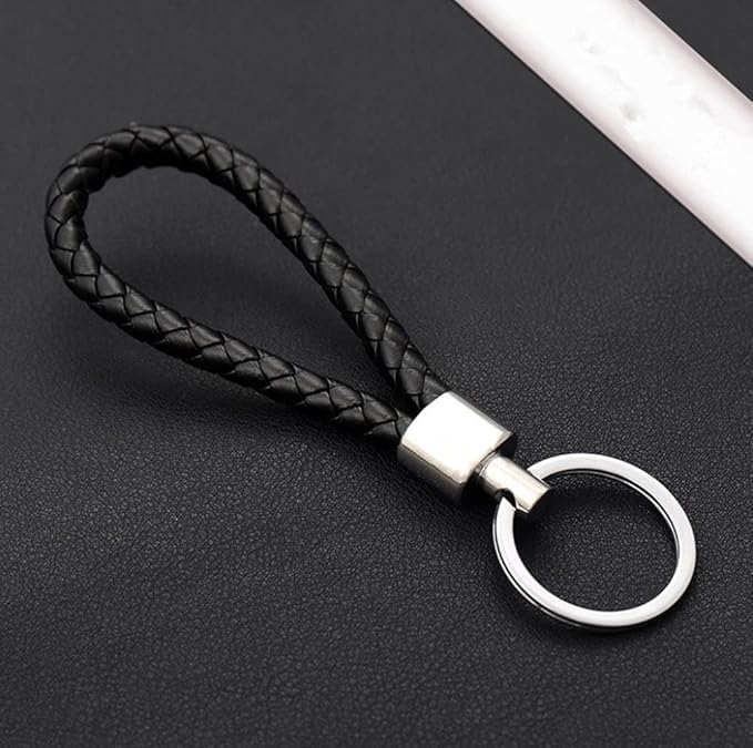 【究極のシンプルデザイン】レザーテープを丁寧に編みこんである、にぎりやすくて、スマートなキーホルダーです。