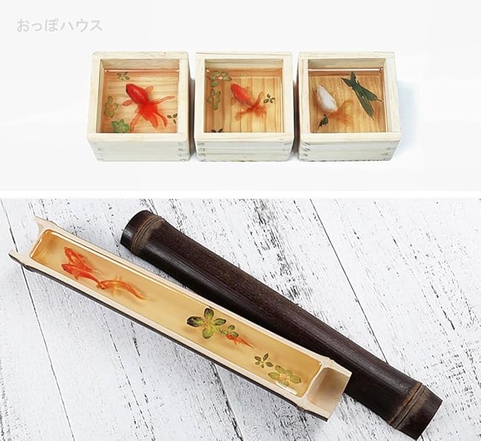 ますを使ったり、うつわを使ったりして本物に近い金魚を演出できます。