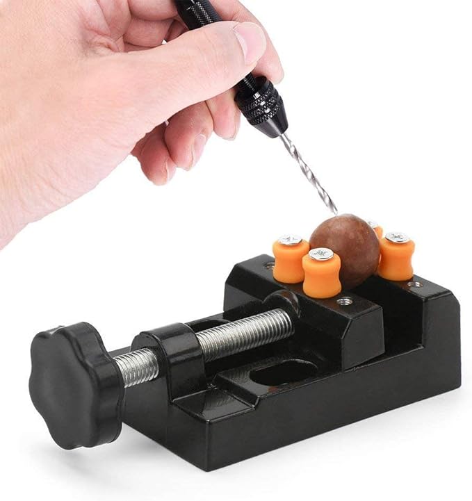 作業台の上で使える小型の卓上ミニ万力です。4点でしっかり商品を固定しますので球体、楕円形の物でも安心です。作業効率の向上にも。