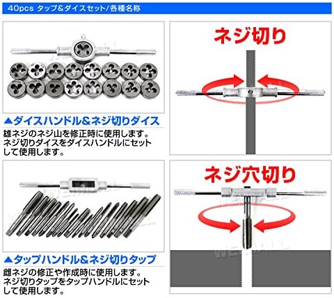 タップダイスセット 40pcs タップ ダイス セット ボルト穴 ボルト山 ネジ穴 ネジ山 修正