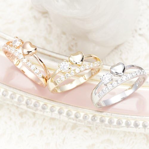 から魅力的に引き立ててください。 シンプルな地金リングは どんなスタイリングにもぴったりハマってくれる優秀アイテム。 リングを重ね着けしているようなデザインのピンキーリング。 ハート&ストー