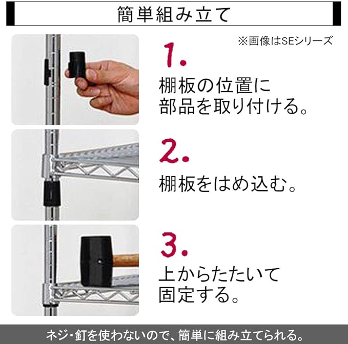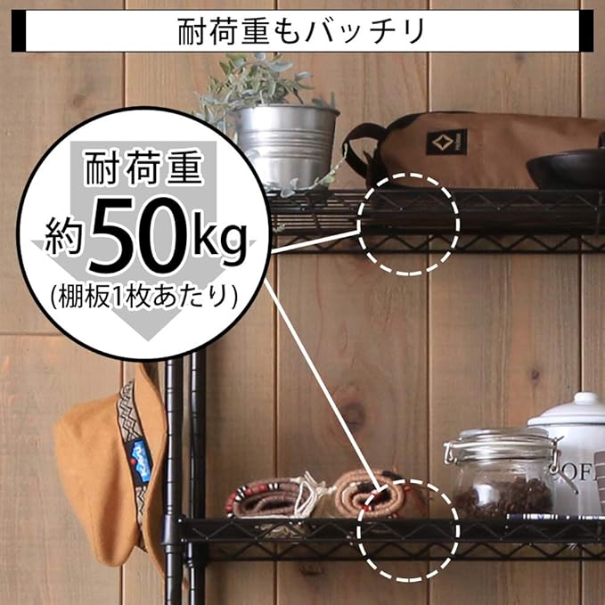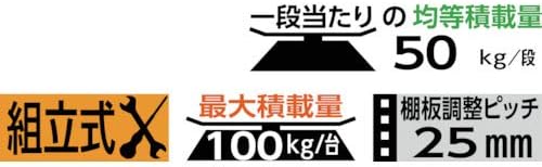 耐荷重:棚板1枚あたり約50kg、全体約100kg