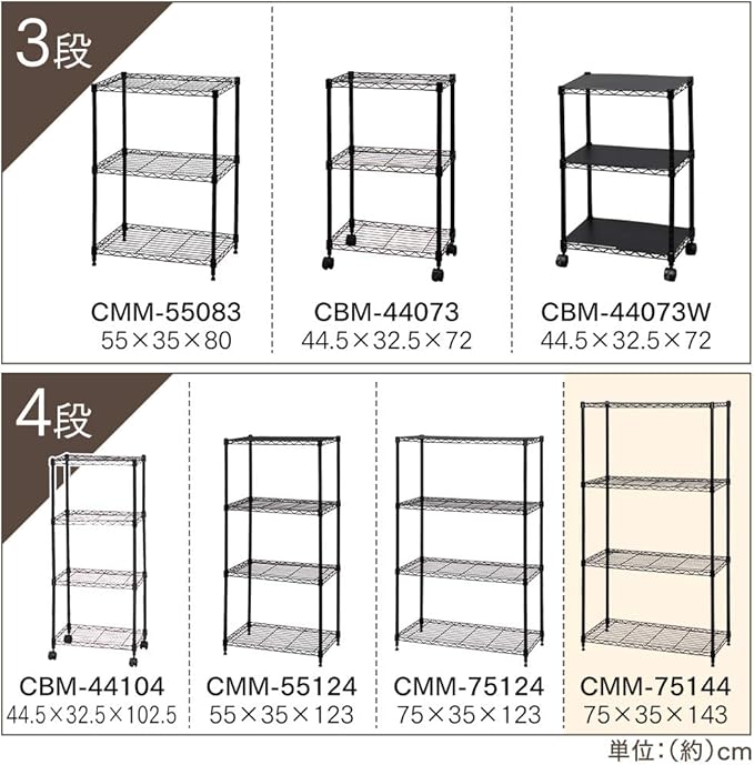 サイズ:幅75 奥行35 高さ143cm(アジャスター含む)