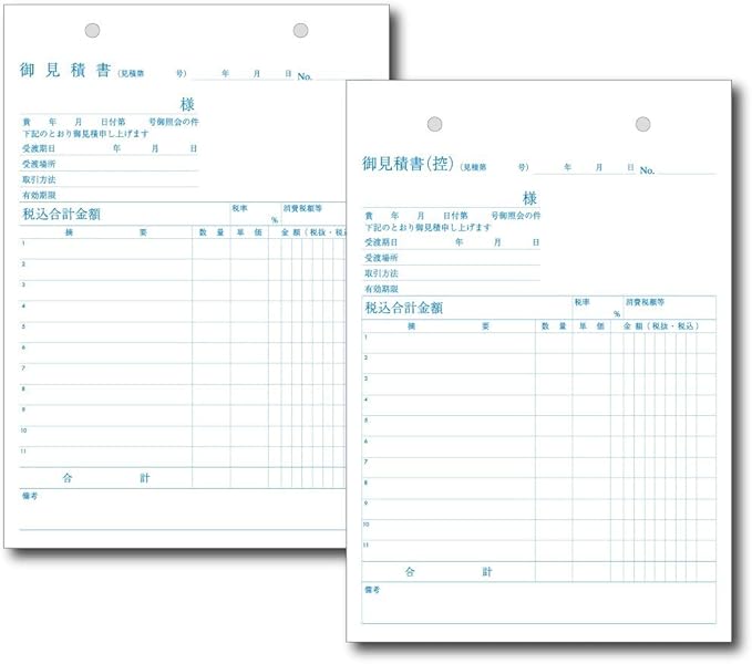 2枚複写伝票 A5サイズ 50冊<br>縦型 (見積書(控)-見積書)