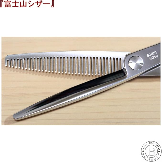 サイズ:6.0インチ、カット率:15~20%、刃形状:正刃、35目、ハンドル:オフセット、全長:170mm、鋏身部:72mm 、材質:VG10、重量:63g、その他:ベアリング付き