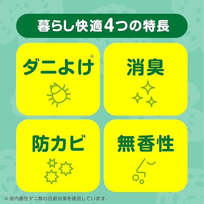 ダニよけだけでなく、消臭・防カビ効果も。(製品と接した対象物の防カビ効果を確認しています。)