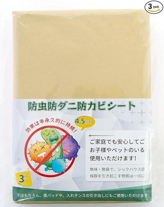 SIXCOM 防虫・防ダニ・防カビシート 4.5帖用 防虫紙 健康敷紙 防湿防虫シート 畳の上に敷くマット ウッドカーペットの下に 防虫シート ダニシート 抗菌/防ダニ 防湿シート 90 280cm 3枚入 | oioioichan