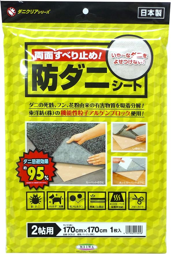 ダニクリア 両面すべり止め!防ダニシート(ベージュ) 170cm 170cm(2帖用) DCS-2 | oioioichan